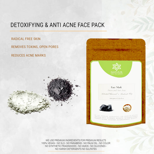 Natuur Face Mask Detox & Anti Acne Activated Charcoal & Bentonite Clay