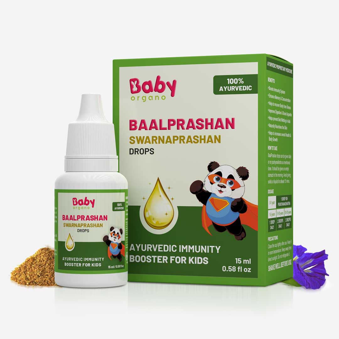 Baalprashan Swarnaprashan/Suvarnaprashan Drops, a potent 100% Ayurvedic immunity booster designed specifically for kids. Trusted by 1 million+ parents, Baalprashan Swarnaprashan Drops contain Shankhpushpi (butterfly pea flower), Brahmi, and Vacha for holistic mental development. What makes Baalprashan Swarnaprashan truly special is the inclusion of 24-carat Gold Ash, which enhances its effectiveness and strength as a natural immunity booster for children.