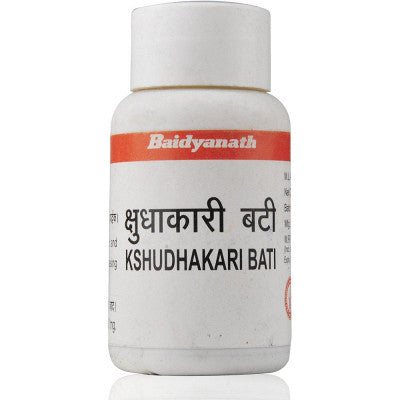 Baidyanath (Jhansi) Kshudhakari Bati is a polyherbal Ayurvedic medicine useful in treating digestive disorders. Kshudhakari Bati is a combination of digestive spices with sugar, salt, and tankan. It has carminative and anti-spasmodic properties. The main ingredients of this medicine are lemon juice, Sendha namak, Cumin seeds, and trikatu.