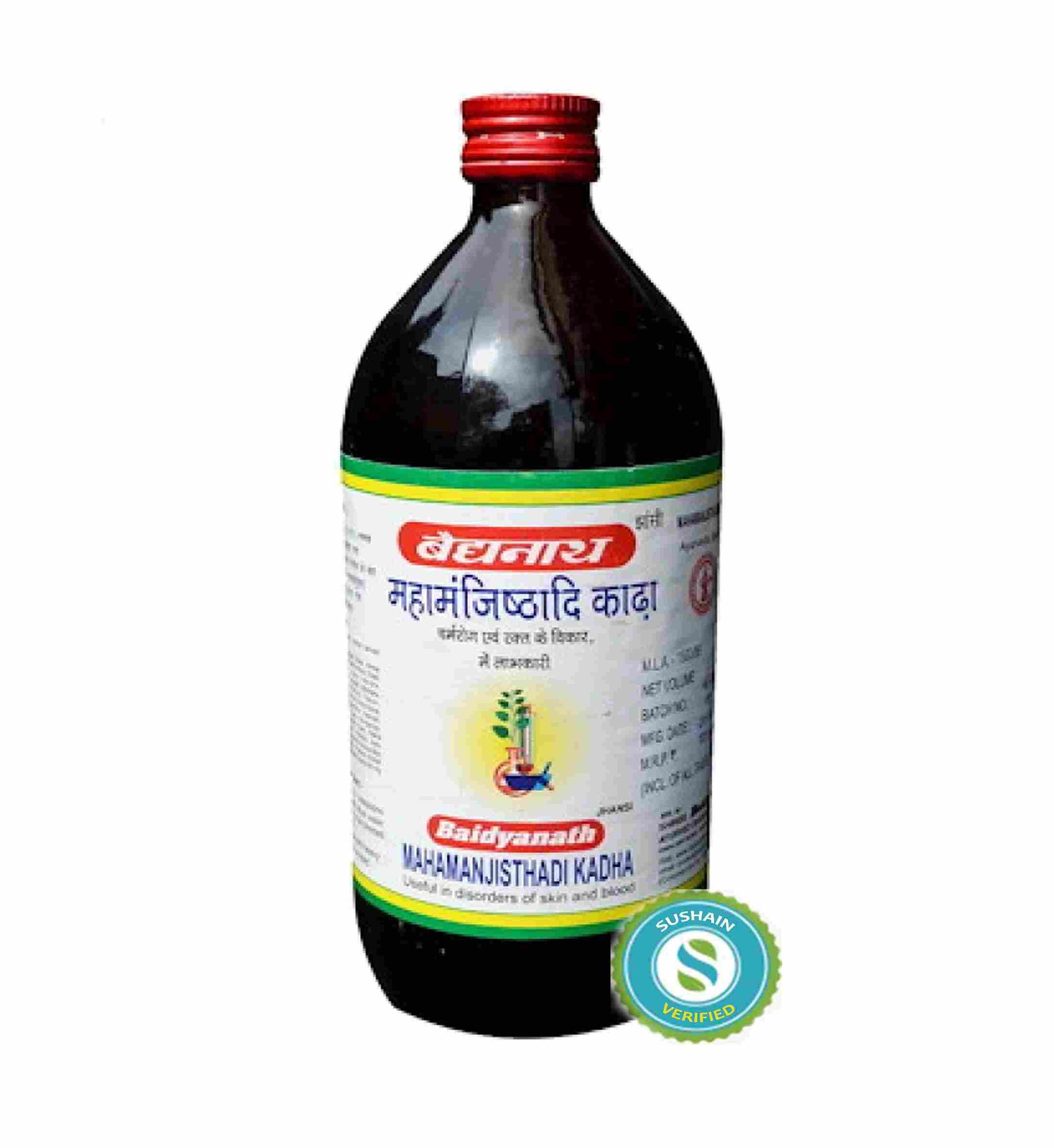 Mahamanjisthadi Kwath Kadha acts as a blood purifier and an anti-infective kadha. It helps to treat skin disease, eczema and boils. It provides support in the treatment of gout, numbness on the skin (as a symptom of Leprotic lesion), obesity and vision disturbances