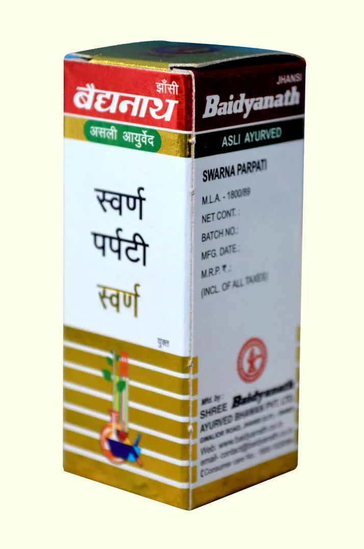 Baidyanath Swarna Parpati is a traditional Ayurvedic formulation valued for its rejuvenating and restorative effects. It enhances vitality and physical strength while supporting digestive health and aiding digestion. Known for boosting overall wellness, it helps improve energy levels and promote the bodys natural defenses.