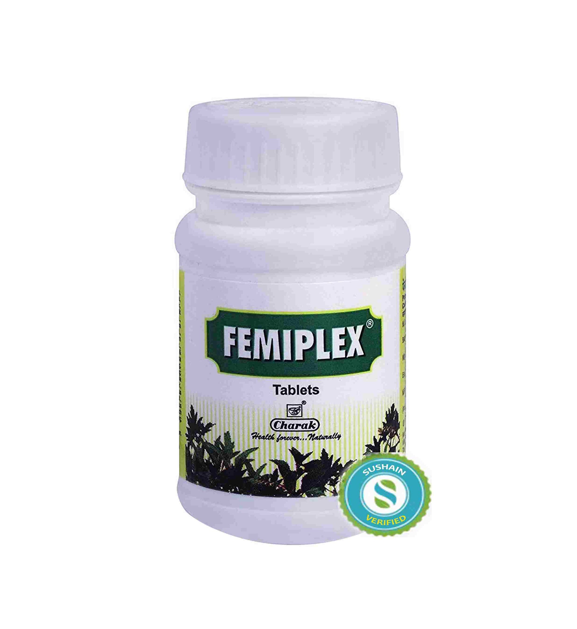 Femiplex Tablet By Charak is a Ayurvedic Product, reported safe to consume and may be taken on the advice of a certified Ayurvedic consultant
