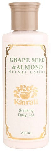 Kairali's Greap Seed & Almond herbal moisturizing lotion is enriched with natural anti-oxidants, vitamin D and E. This herbal body lotion absorbs quickly into the skin and deeply moisturizes and nourishes the skin. Its natural properties help to maintain skin's pH balance and makes skin supple, smooth, soft and glowing. It is the best body lotion for dry skin & especially during winters. Regular uses of it helps in absorbing excess serum, opening pores and detoxifying skin. It removes unevenness on the skin, reduces wrinkles and enhances the skin complexion. This moisturizing lotion protects your skin from harmful pollution effects, smoothens the skin and gives a freshness feel to the skin. The Key Ingredients in this herbal moisturizing lotion are: Greap Seed: - It has amazing anti-ageing, antioxidant and skins cell protective properties. It protects against environmental factors, prevents acne and removes unevenness on the skin. Almond: - Good source of antioxidant, vitamin E and other skin protective properties. It reduces wrinkles & fine lines, removes dark circles & tan and makes the skin healthier. It slows down the signs of aging. Benefits: Moisturizes & enriches skin with vitamin D Contains Anti-Oxidant properties Hydrates & Protects skin Contains grapeseed & almond extracts Direction of Use Use daily all over the face, neck and body with upward strokes by massaging gently till the moisturizer is absorbed by the skin.
