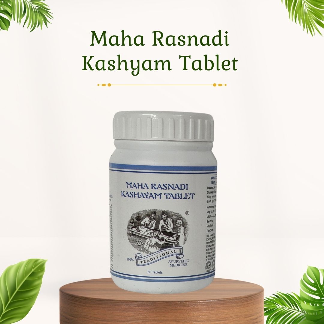 Maha Rasnadi Kashayam Tablet is a traditional Ayurvedic formulation known for its potent anti-inflammatory, analgesic, and rejuvenating properties. This herbal medicine is particularly effective in treating musculoskeletal disorders, neurological conditions, and various types of pain. The key ingredients in this kashayam tablet work synergistically to balance the doshas, reduce inflammation