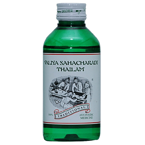 Ayurvedic medicated oil for treatment of Rheumatic ailments and neurological disorders, especially those affecting the lower limbs. Sciatica, numbness, tingling sensation, lower back ache, pain in the joints etc are significantly cured with proper application of the oil.