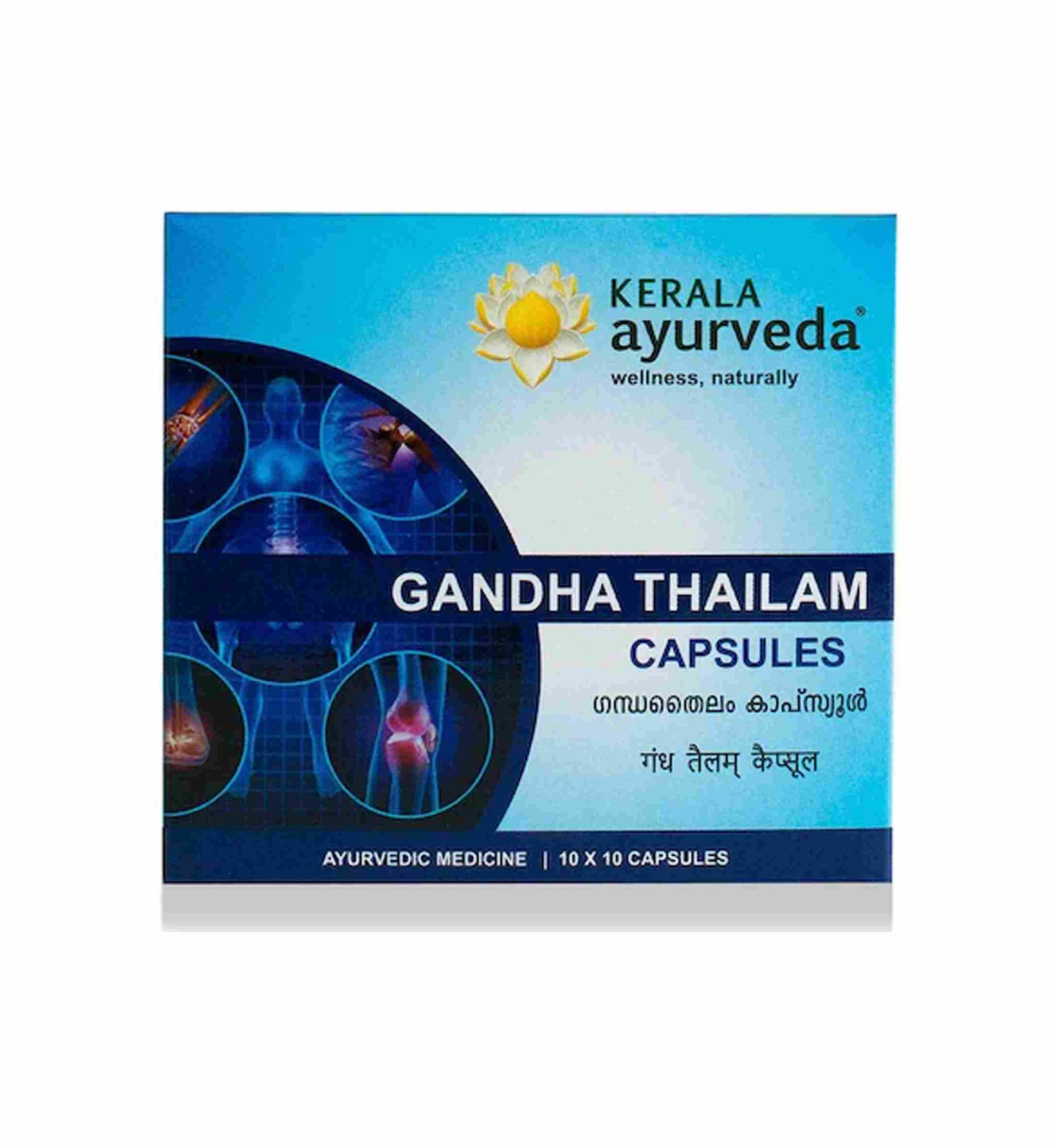 Gandha thailam capsules by Kerala Ayurveda are excellent Ayurvedic medicine for bone strength and joint care. If you have joint pain and stiffness because of an injury or an underlying condition like arthritis, Gandha taila capsules may help manage your symptoms and expedite recovery.
