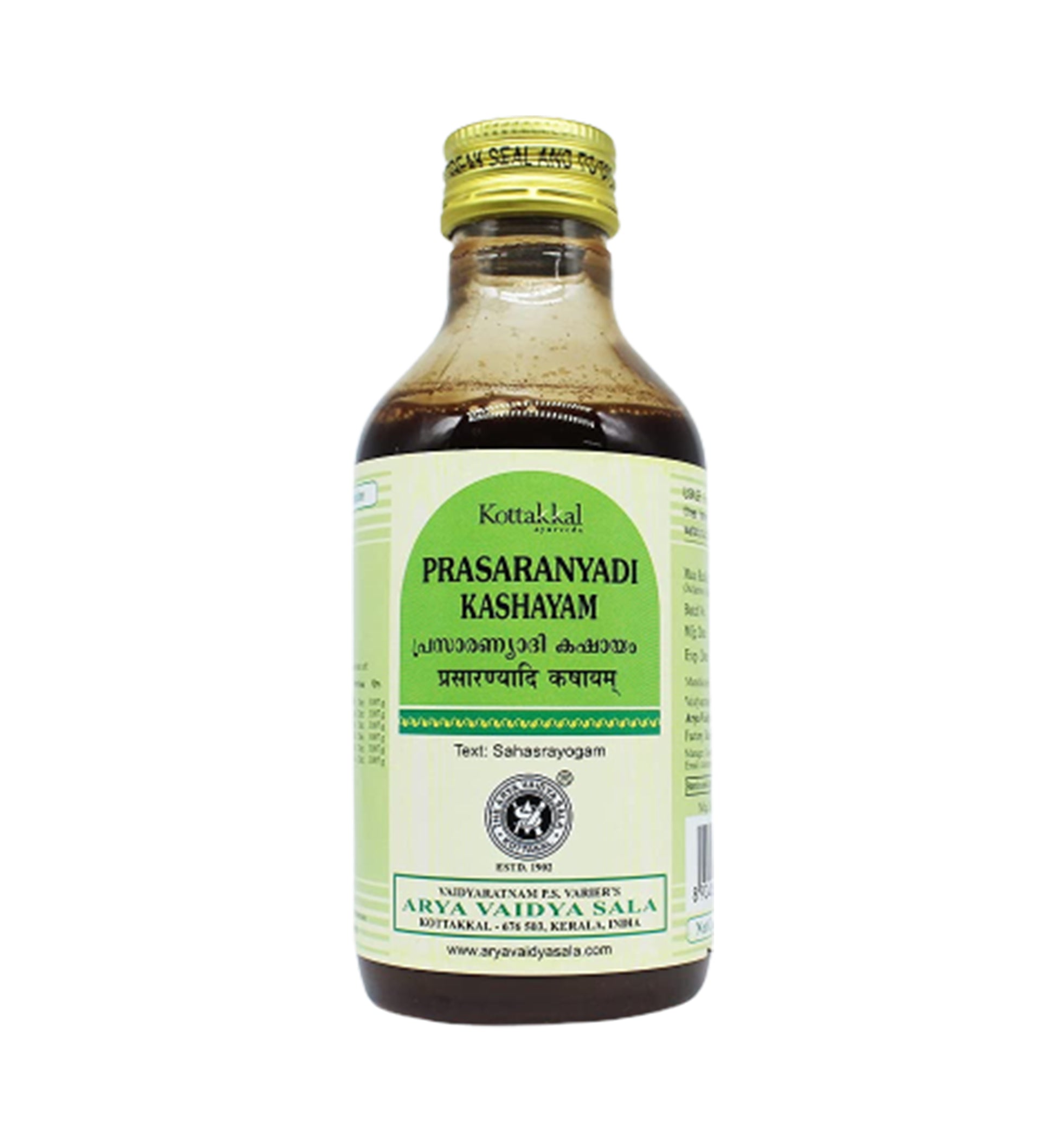 Prasaranyadi Kashayam 200ml Kottakkal: Supports joint and muscle health with Kottakkal's Prasaranyadi Kashayam.