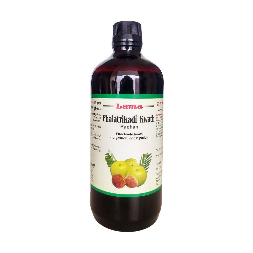 Lama Phalatrikadi Kwath is an Ayurvedic composition that can help support liver functions and loss of appetite. The ingredients may also help manage gas, stomach bloating, belching, indigestion, constipation, and heartburn.