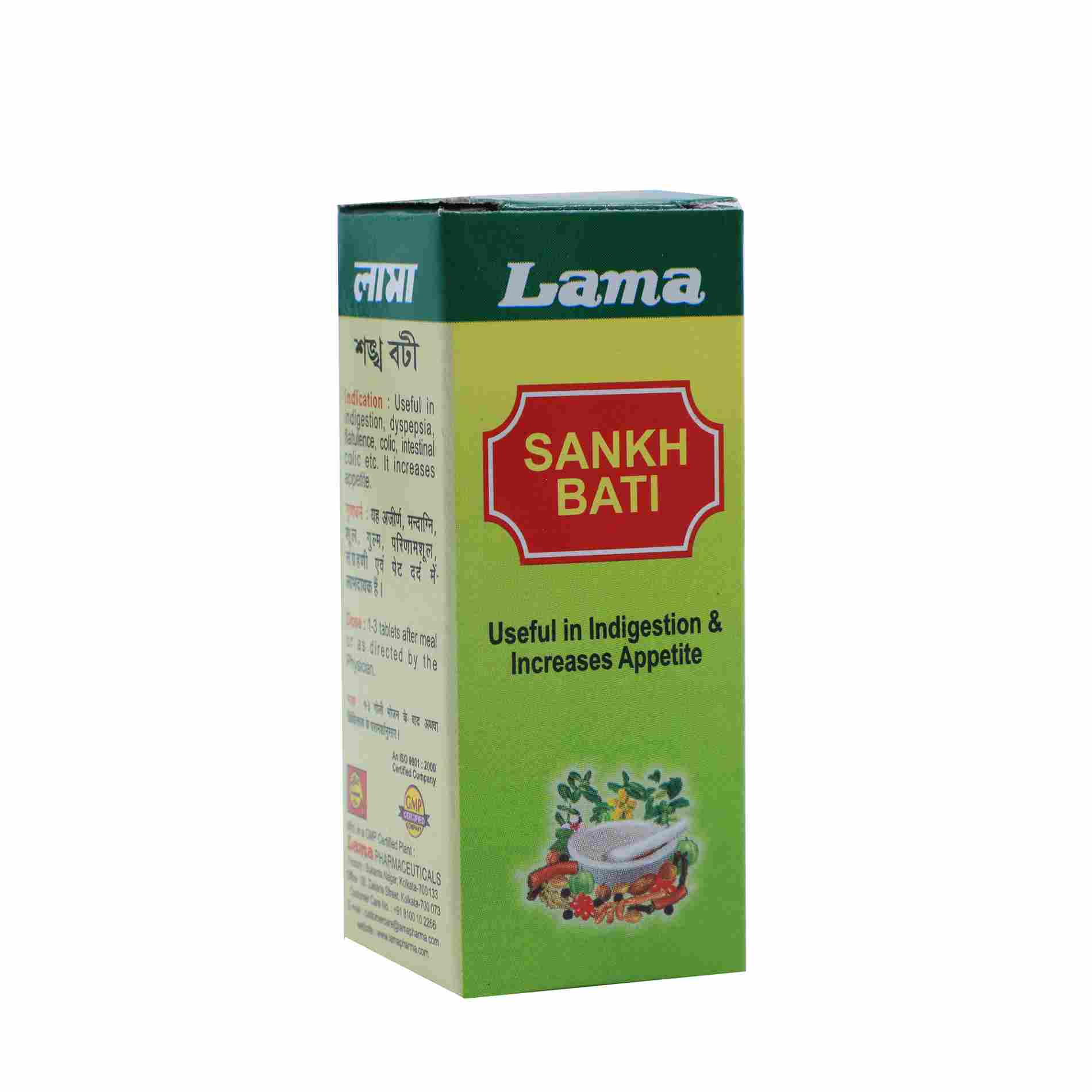 Lama Sankh Bati is a herbal remedy for digestive ailments. Enriched with the goodness of herbs such as Tamarindus indica and Nimbu swarasa, it helps in improving appetite and digestion. It provides relief from dyspepsia, flatulence and colic pain.