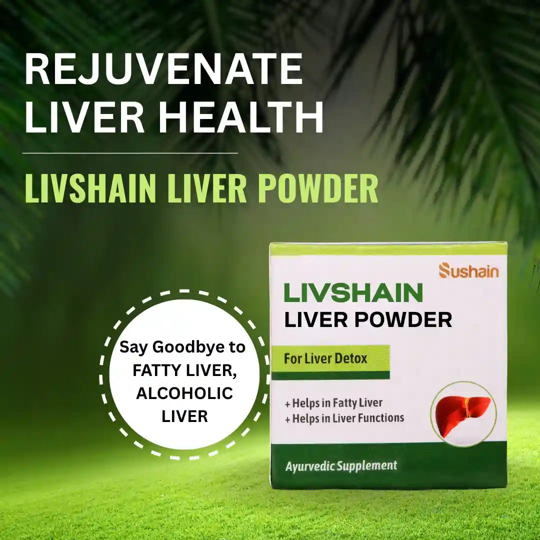 Livshain Liver Powder is a premium Ayurvedic formula crafted for complete liver detox and long-term liver care. Made with Guduchi, Kalmegha, Kutaki, and Shuddha Shilajatu, it works as one of the best liver detox solutions to naturally cleanse toxins, improve digestion, and boost energy. This powerful liver powder acts as a safe liver detoxification medicine, supporting liver cell protection and enzyme balance. It is highly effective in managing Fatty liver, hepatitis, and early cirrhotic conditions. Choose Livshain daily for holistic liver detox, preventive healthcare, and enhanced overall wellbeing – your trusted partner for strong, healthy liver function.