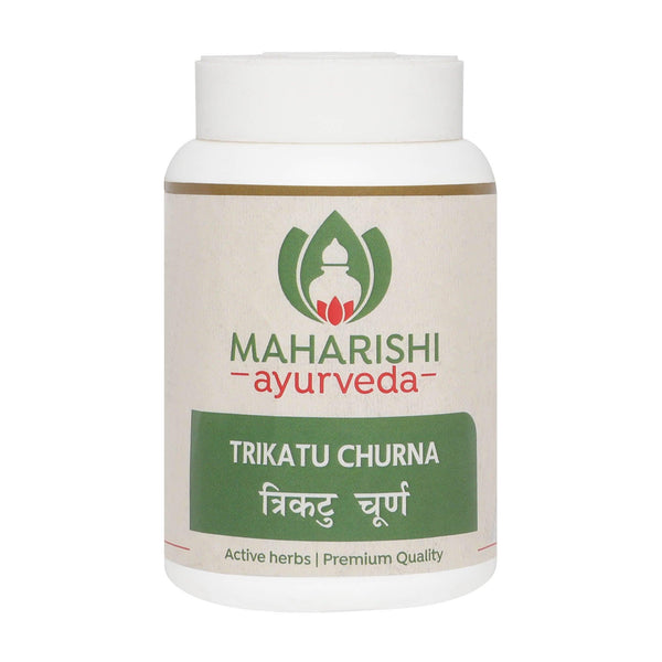 Maharishi Ayurveda Trikatu Churna is an Ayurvedic medicine used for enhancing effects and increasing the absorption of ayurvedic medicines. Trikatu Churna produces heat in the body and increases digestive juices and bile salt secretion.