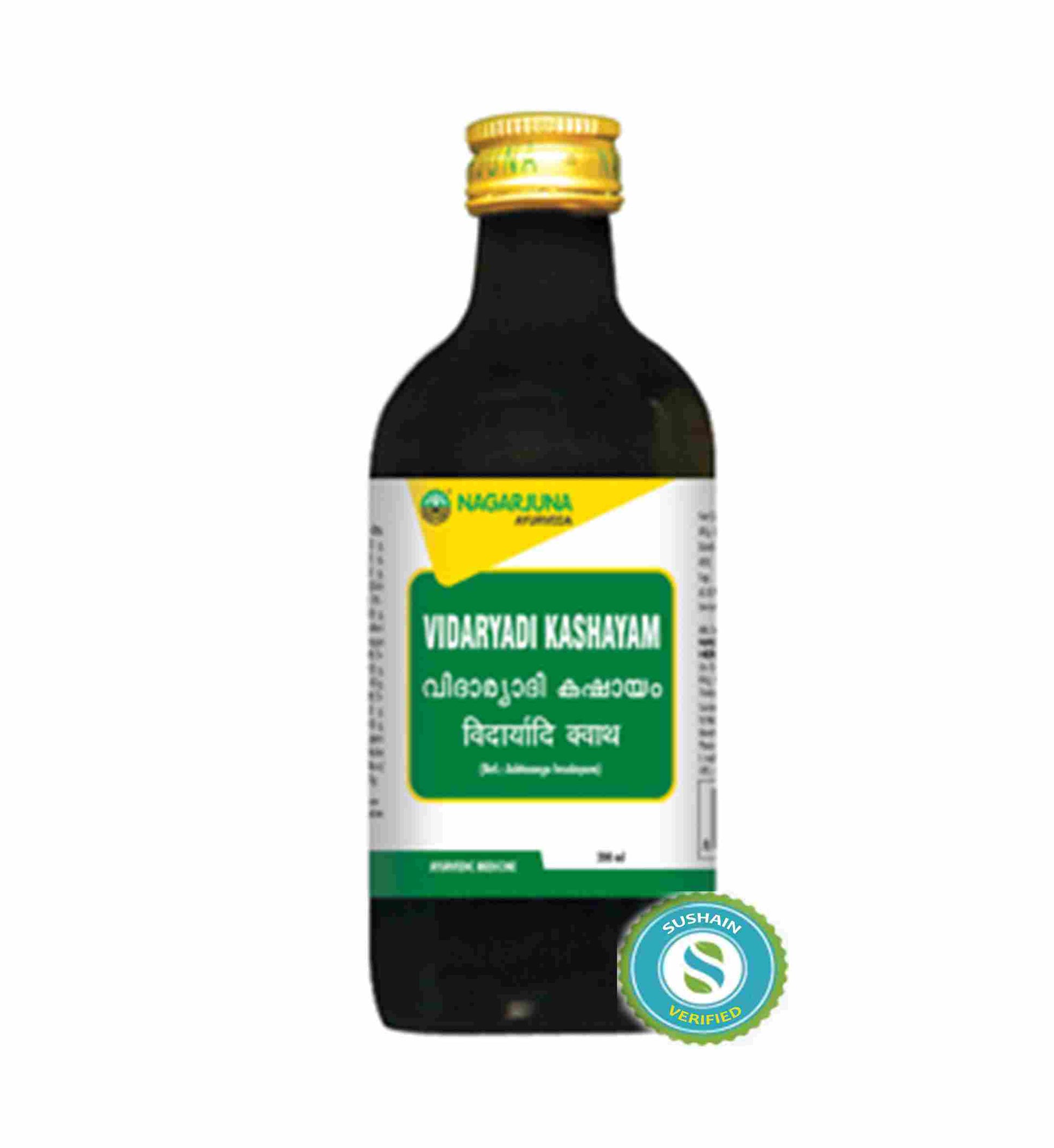 Vidaryadi Kashayam is an Ayurvedic decoction that may contain Vidari (Pueraria tuberosa) and other herbs. It is commonly used to support reproductive health in women.