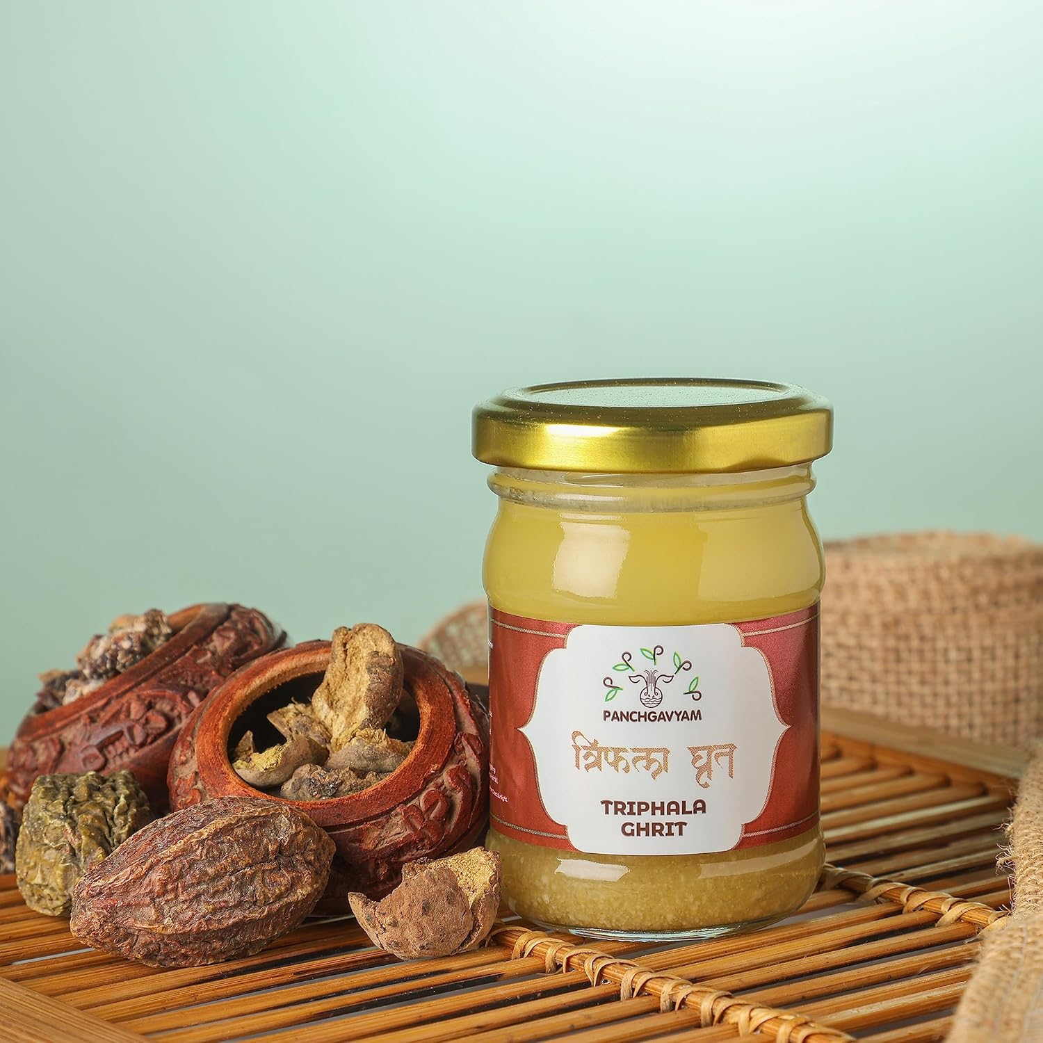 Triphala Ghrit is a classical formulation that aims at addressing all the eye issues like dry eyes, eye sight number, Pterygium and computer vision syndrome. In addition to reducing lens opacity, improving vision, bringing clarity, and protecting the eyes from various diseases after consumption.