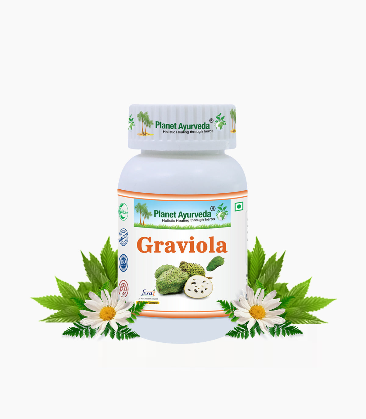Graviola Capsules is a single herbal formulation prepared using standardised extract of Annona muricata. It is also known as Soursop and Brazilian paw. This herb has a delectable flavour. This plant is native to tropical areas of southern and central America. The active ingredients of this herb are tannins, saponins, phytosterols, flavonoids and many others, thus supporting healthy functioning of the body.NULL