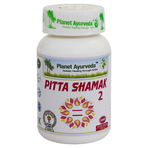 Planet Ayurveda Pitta Shamak 2 Vege Capsule It helps to restore digestion, improves absorption and cools down the body. It is useful in all the Pitta and Rakta disorders of our the body. All the metabolic problems occurred due to imbalanced pitta, could be potentially managed by this formulation.