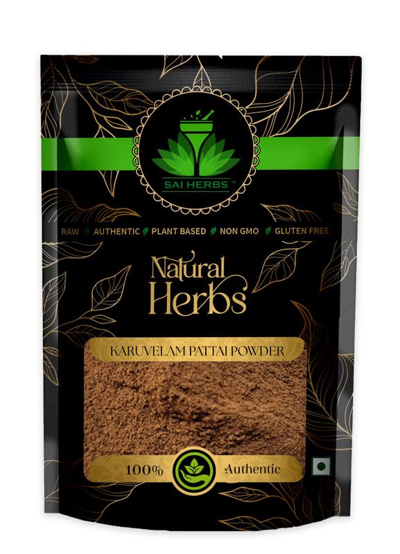 Sai Herbs Karuvelam Pattai Powder is made from the bark of the Prosopis cineraria tree, commonly known as Khejri or Karuvelam. It is used in traditional medicine for its anti-inflammatory, antimicrobial and detoxifying properties. The powder helps manage blood sugar levels, improve digestion and promote skin health and overall wellness.