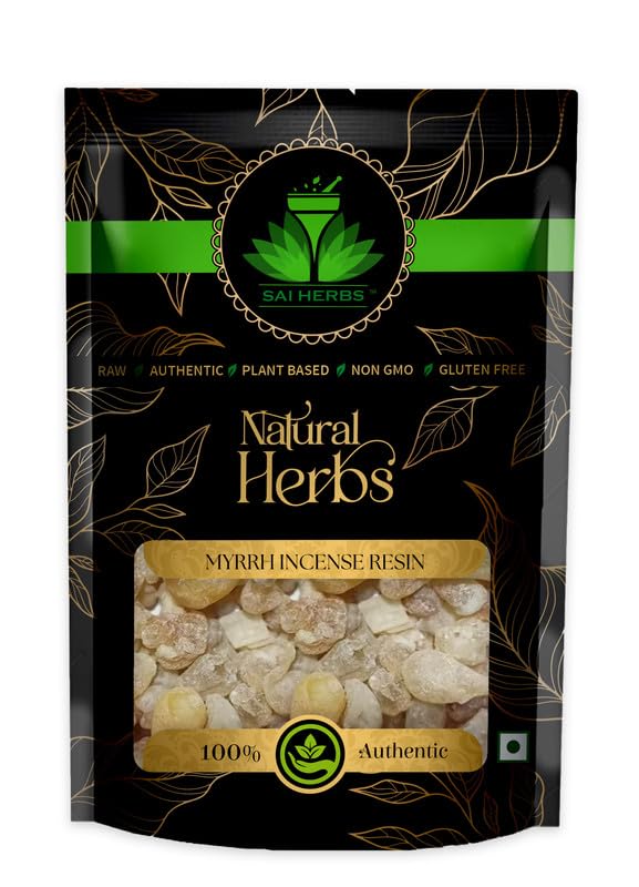 Improves Mental Clarity: Helps clear the mind, enhancing focus and mental clarity.NULLHighlights/h3>Sai Herbs Myrrh Incense Resin is made from the resin of the Myrrh tree, known for its rich, earthy fragrance. It is commonly used in incense and aromatherapy for its calming and purifying effects. Myrrh is believed to enhance meditation, reduce stress, promote relaxation, and improve mental clarity