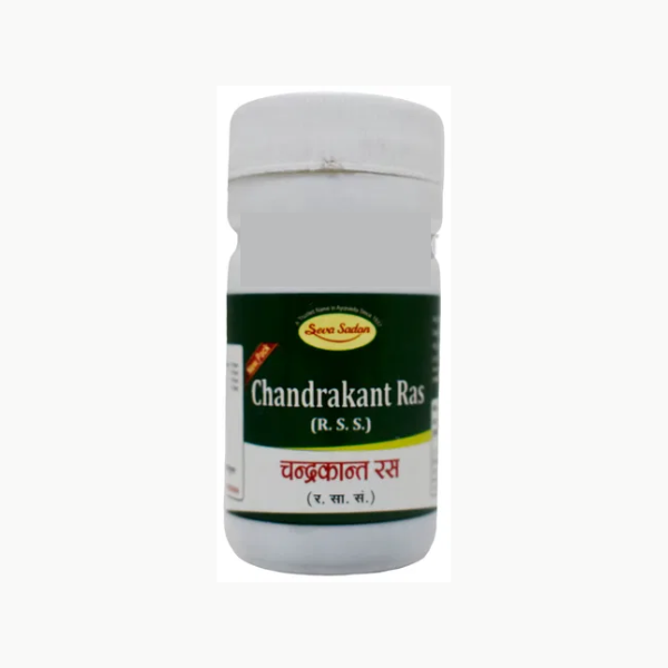 Seva Sadan Chandrakant Ras Tablet is an Ayurvedic supplement helpful for the management of asthma, bronchitis, headaches, and respiratory conditions. It is made using a combination of natural ingredients including Ras Sindoor (Red Sulfide Of Mercury), Abhrak Bhasma (Powdered Mica), And Shankh Bhasma (Powdered Conch Shell). This supplement has a powerful antipyretic effect that helps manage fever. Key Ingredients: Ras Sindoor (Red Sulfide Of Mercury) Abhrak Bhasma (Powdered Mica) Shankh Bhasma (Powdered Conch Shell) Key Benefits: It helps in alleviating respiratory ailments It helps reduce inflammation in the body It works as an expectorant and is useful for bronchitis It helps relieve irritation in the throat Directions For Use: Use as directed by a healthcare professional Safety Information: Read the label carefully before use Store in a cool and dry place, away from sunlight Keep out of reach of children