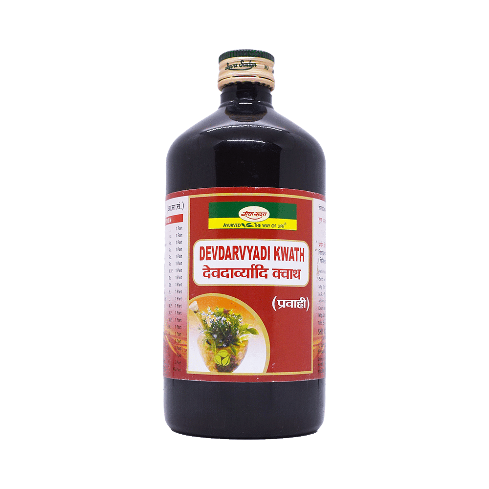Seva Sadan Devdarvyadi Kwath is a ayurvedic product used in the management of cough, cold, bronchitis, asthma, bodyache etc. It is beneficial for asthma, respiratory disorders, abdominal colic, dizziness, headache, excessive irrelevant talk, excessive burning sensation, diarrhoea, tiredness, vomiting.Highlights