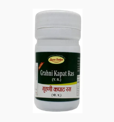 Seva Sadan Grahni Kapat Ras Tabletis an Ayurvedic medicine that is used to treat digestive disorders such as irritable bowel syndrome, constipation, diarrhoea, and indigestion. The tablet contains several herbal and mineral ingredients, including Dhatri Loha, Sajikshar, Navsadar, Shankh Bhasma, and Vidang.
