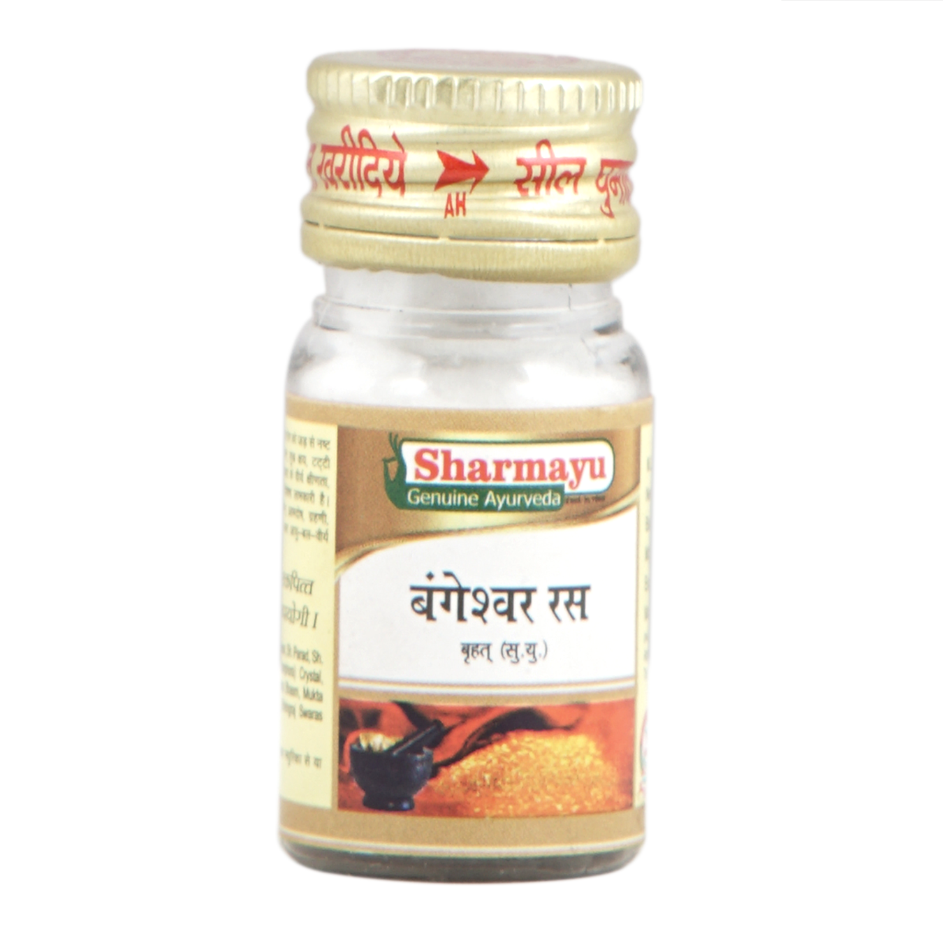 Bangeshwar Ras Tablet is an Ayurvedic formulation that is available in a bottle containing 25 tablets. it is mentioned that Bangeshwar Ras from Baidyanath is an all-natural Ayurvedic formulation that can have a positive effect on blood glucose problems, urinary tract infections (UTIs), and sexual debilities.