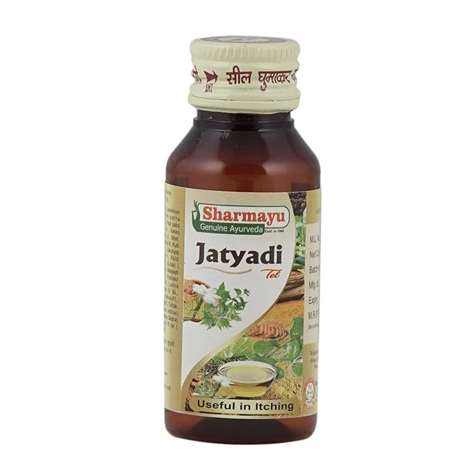 Jaatyadi Tel, also known as Jatyadi Oil, is tailored to address skin infections and irritations, offering soothing relief, reducing redness, and promoting the healing process for disintegrated skin and injuries.