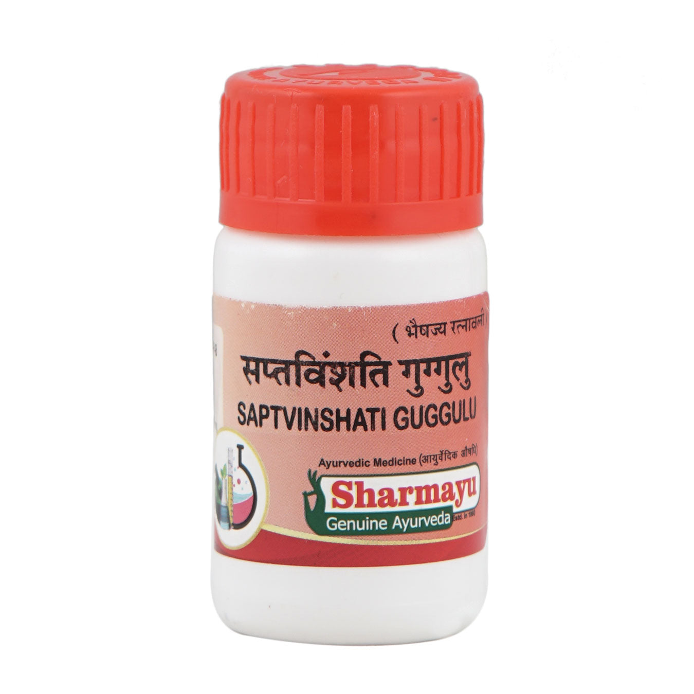 Sharmayu Saptavinshati Guggulu is an Ayurvedic medicine used to treat a variety of ailments, including skin infections, fistula, and wounds.