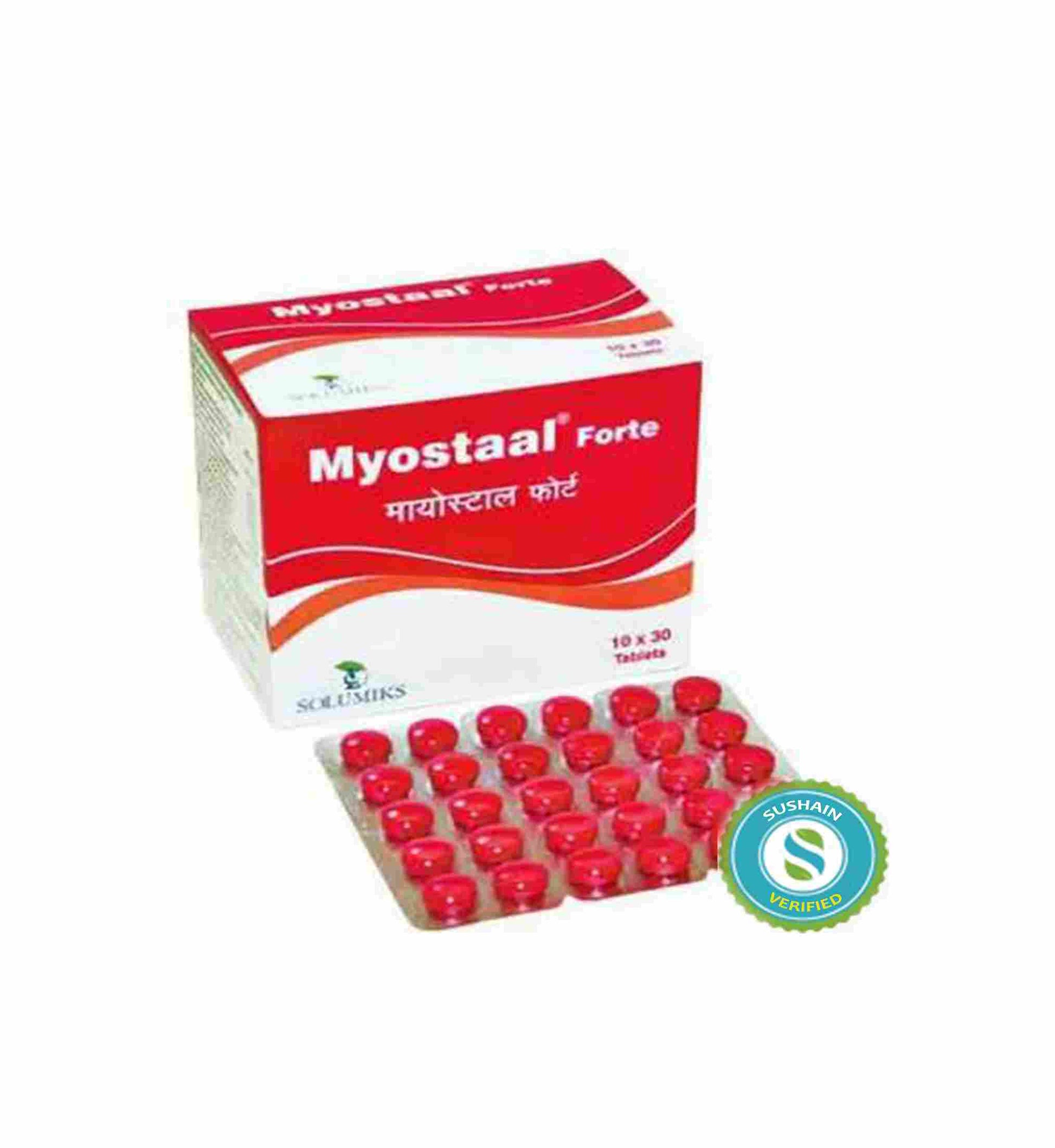 Myostaal Forte Tablet by Solumiks - Contains herbs like Shallaki, Guggulu, and Ashwagandha, supporting joint and muscle health, promoting flexibility, and providing relief from discomfort.