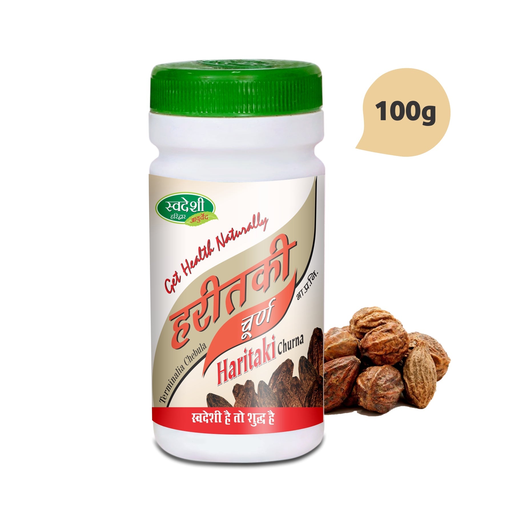 Swadeshi Haritaki Churna contains Harad as an active ingredient. Swadeshi Haritaki Churna is useful in constipation, cough, stomach, and skin bacteria and fungi infections.