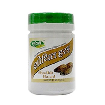 Swadeshi Shodhit Harad is made of harad which is the name of the dried fruit of the Terminalia Chebula tree. Dried Terminalia Chebula fruit powder is also one of the three ingredients in Triphala, probably the most famous of all the Ayurvedic formulas for better health. However, it is often prescribed as a stand-alone treatment for specific disorders and to bring an unhealthy body back into balance. It removes constipation disorders, useful in burning sensation, loss of appetite, anorexia, abdominal gases, and loss of appetite.