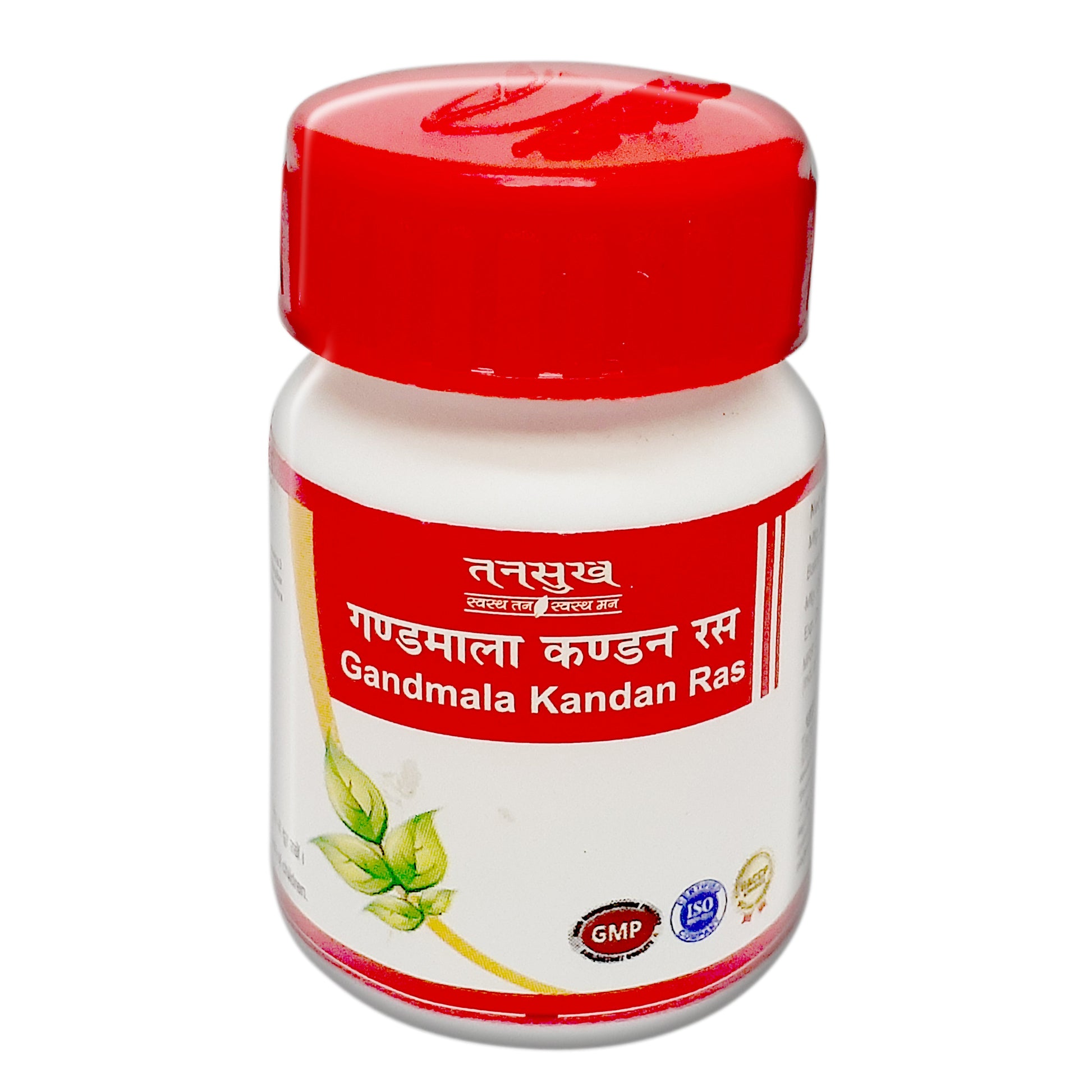 Tansukh Gandmala kandan Ras is an Formulation From Ayurveda and Gandmala Kandan Ras is used to Treat Glands and Thyroid related Diseases. Key Ingredients: Shudhh gandhak, Shudhh Parad, Tamra Bhasma, Mandoor Bhasma, Guggulu, kachnar