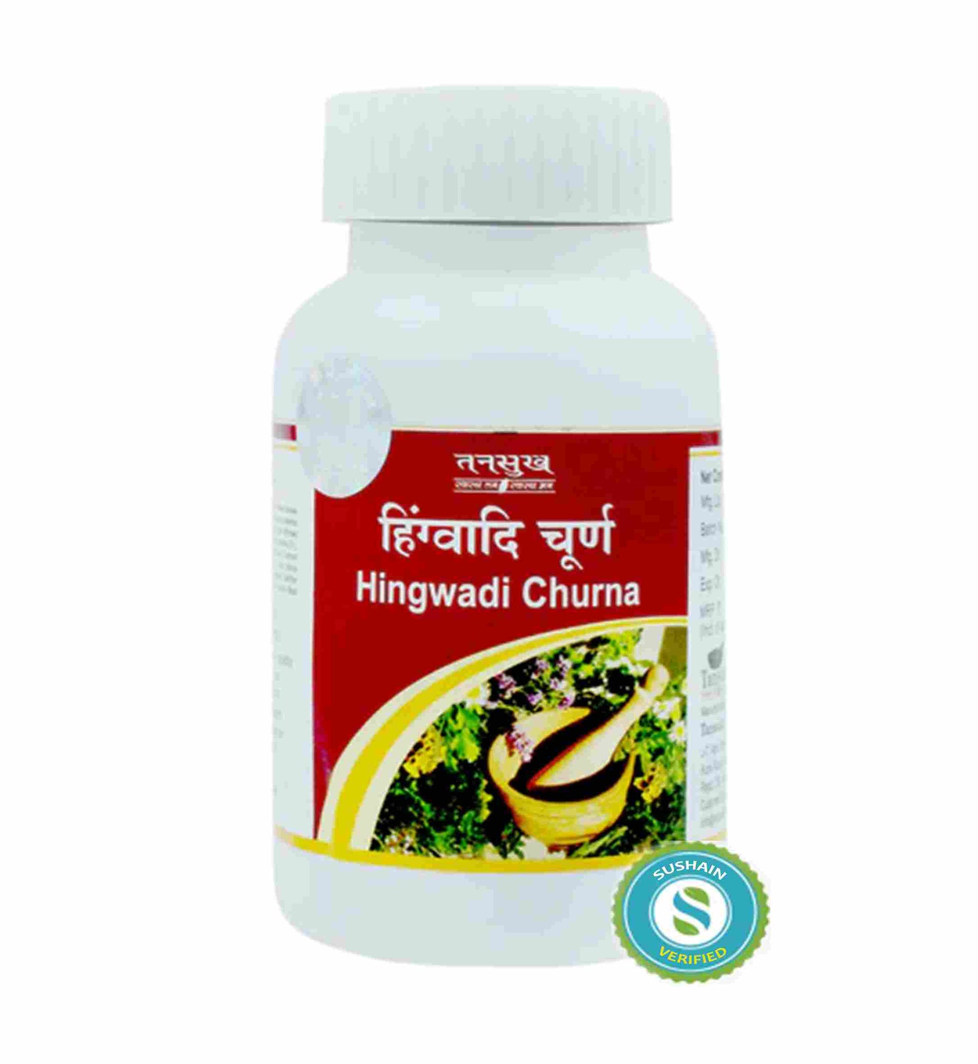 Tansukh Hingwadi Churna - A blend of Hing (Asafoetida), Ajwain, and other ingredients, supporting digestive health and relieving gas and bloating.
