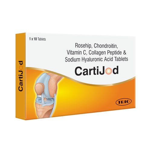 Unique formula for mobility, flexibility, comfort, strength & lubrication of joints in the human body. It contributes to normal collagen formulation for the normal functions of the bones & cartilage. It strengthens the bones. It is useful in Osteoarthritis & Rhematoid Arthritis. Cartijod Tablet is Non-steroidal, Non-habbit forming Natural formula free from untowards effects like hyper acidity, gastric irritation, nausea & vommiting.