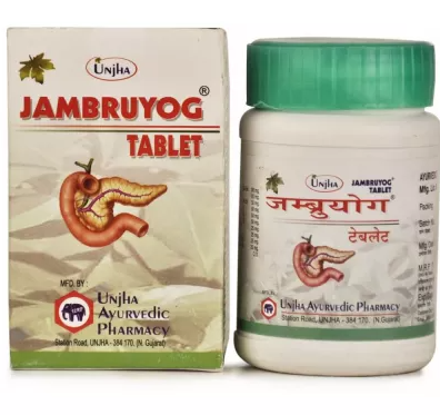 Unjha Jambruyog Tablets is a Ayurvedic medicine that helps to manage high blood sugar levels and related symptoms.