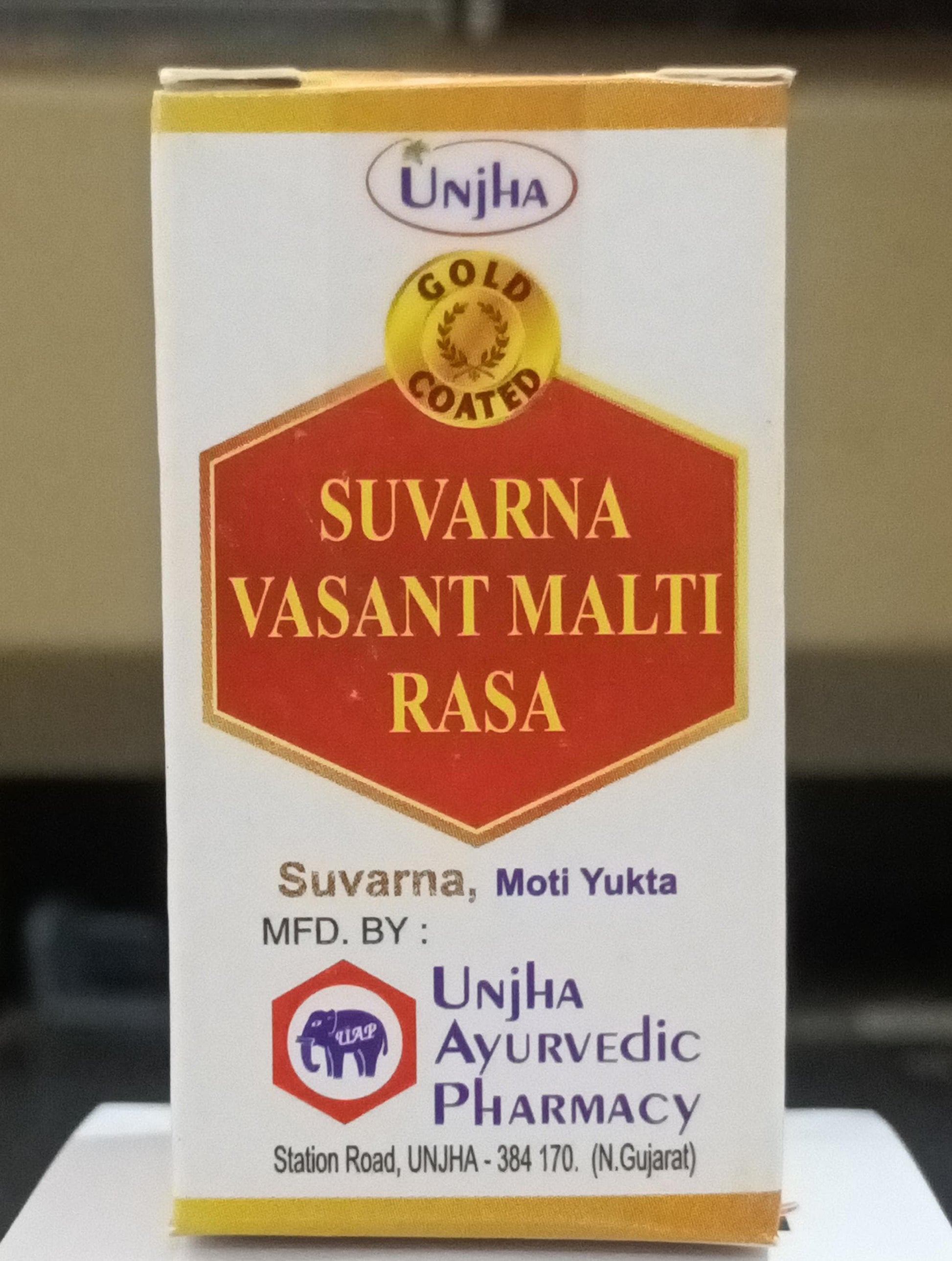 Unjha Vasant Malti Ras Suvarna Yukta Helps Reduce Mild to High Temperature, Cough, Cold, Bronchitis, Asthma.