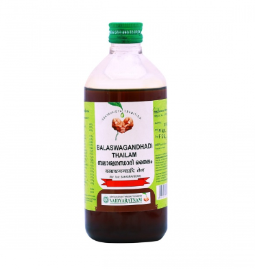 Vaidyaratnam Balaswagandhadi Thailam is an ayurvedic formulation oil used for fever, weakness of muscles, bones and joints etc. It is used for external application.
