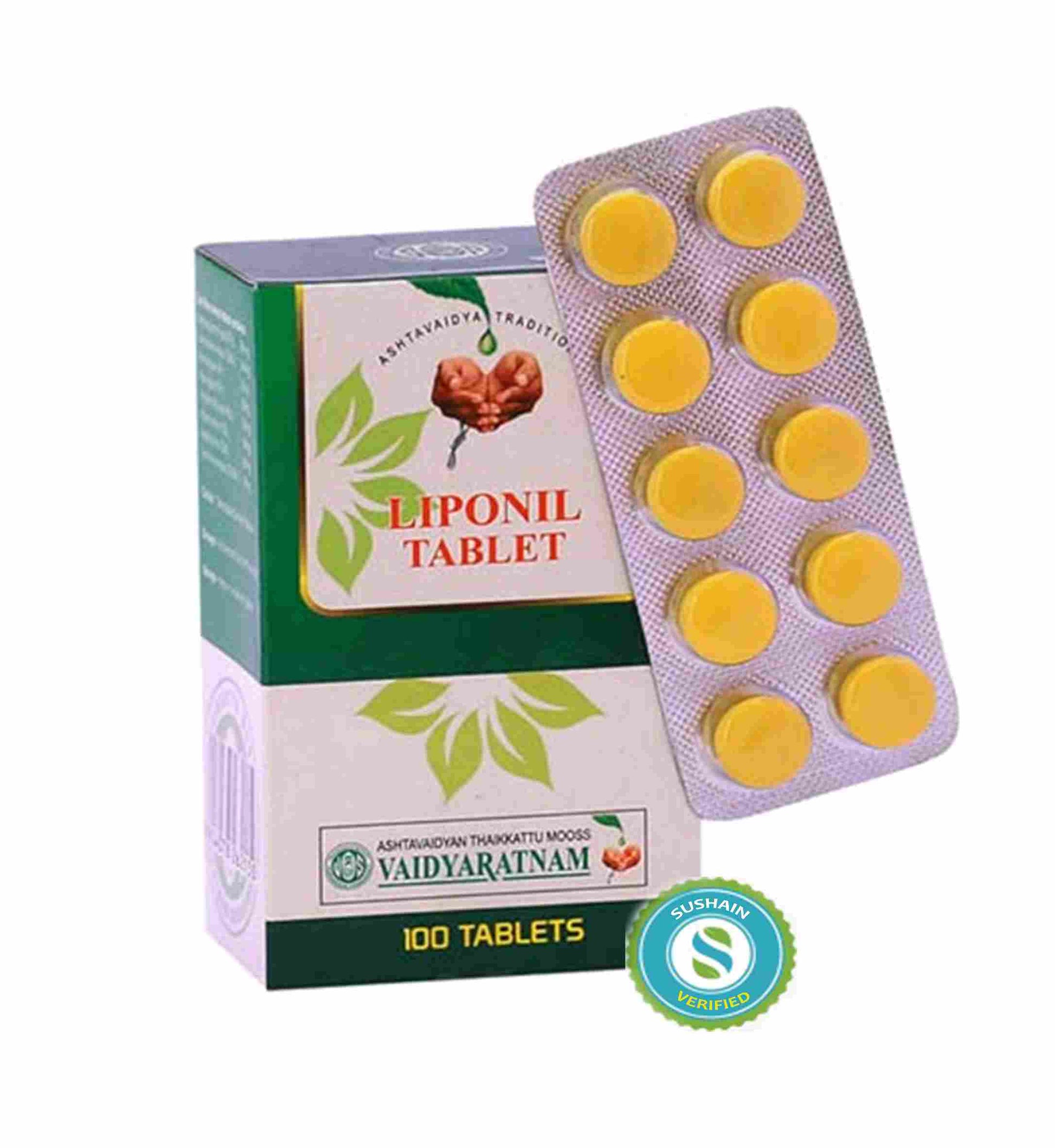 Liponil Tablet 100 Tablets by VAIDYARATNAM - Supports cardiovascular health and healthy lipid levels.