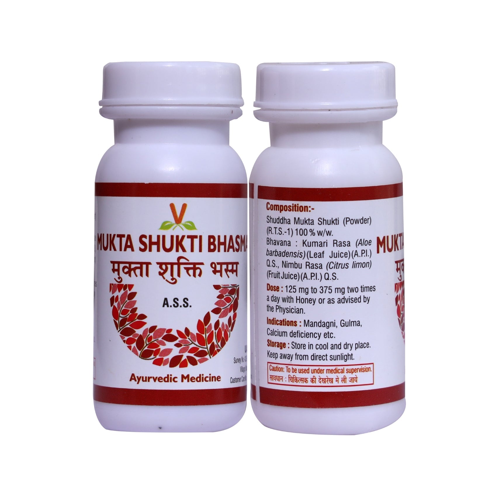 Muktashukti Bhasma is an Ayurvedic medicine prepared from Pearl. It is used in Ayurvedic treatment of cough, cold, asthma, digestive disorders etc. This medicine should only be taken strictly under medical supervision.Description