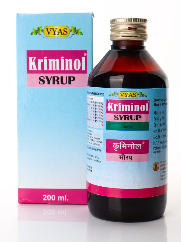 Vyas Kriminol Syrup is an ayurvedic product for worm infestation. It is an appetizer and digestive. It is very effective in removing worm infestations and also prevents further infestation.