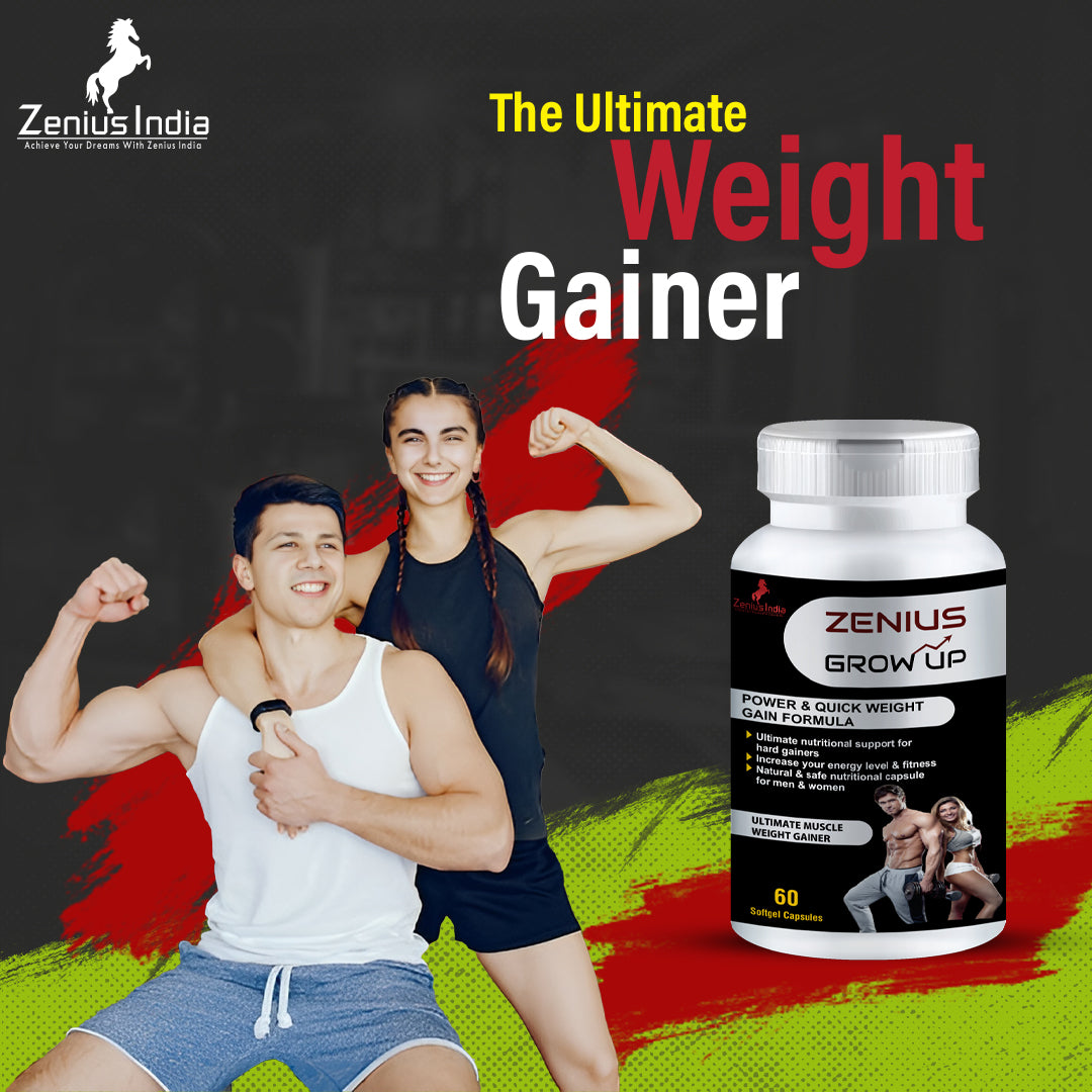Zenius Grow Up Capsule is the Best Weight Gain Supplement for skinny guys who are desperately trying to add some kilos to their bodies. Grow Up Capsule is the Best Weight Gain Supplement for all such people who want to gain weight in a natural manner. Grow Up Capsule is that source. It is the ultimate Best Weight Gain Supplement helpful for men and women alike. The reasonable thing that comes to anyone's mind while looking for Best Weight Gain Supplement is the safety factor and impact duration. Grow Up Capsule best muscle gainer leaves no chance for these concerns. It reestablishes the body functionality for better food digestion and nutrients absorption, energy management and appetite, which give the genuine push to your body build. It is not any temporary mass building supplements that are known to disbalance body functions. It is a well-researched approach to support your body and so the results remain forever.