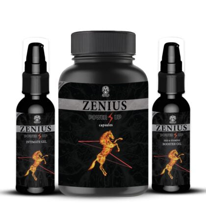 Zenius Power UP kit is a holistic solution for your sexual well-being. This comprehensive kit combines 60 capsules, 50ml of oil, and 50ml of gel, enriched with natural ingredients like Ashwagandha, Tribulus, and Shatavari extracts. The Xtra Power Capsules offer a unique blend of Ayurvedic elements and are tailored to boost vitality, stamina, and overall performance. Meanwhile, the Xtra Power Oil and Gel provide targeted nourishment, enhancing circulation and pleasure. Prioritize your sexual health naturally with this carefully crafted kit, promoting a more satisfying and invigorating intimate experience.