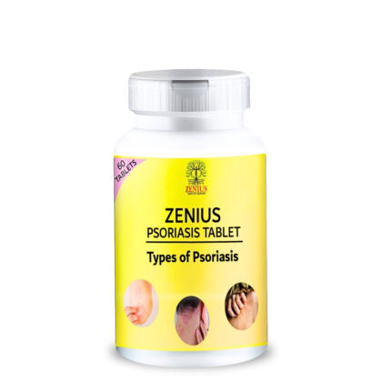 Zenius Psoriasis Tablets, enriched with Neem, Manjistha, Mulethi, Cumin, Khadira, Bakuchi, Aloevera, and Haldi, provide comprehensive relief for psoriasis symptoms. This Ayurvedic blend targets inflammation, detoxifies, soothes, and supports skin regeneration, offering hope for healthier, more radiant skin. Embrace the natural power of Ayurveda with Zenius Psoriasis Tablets.