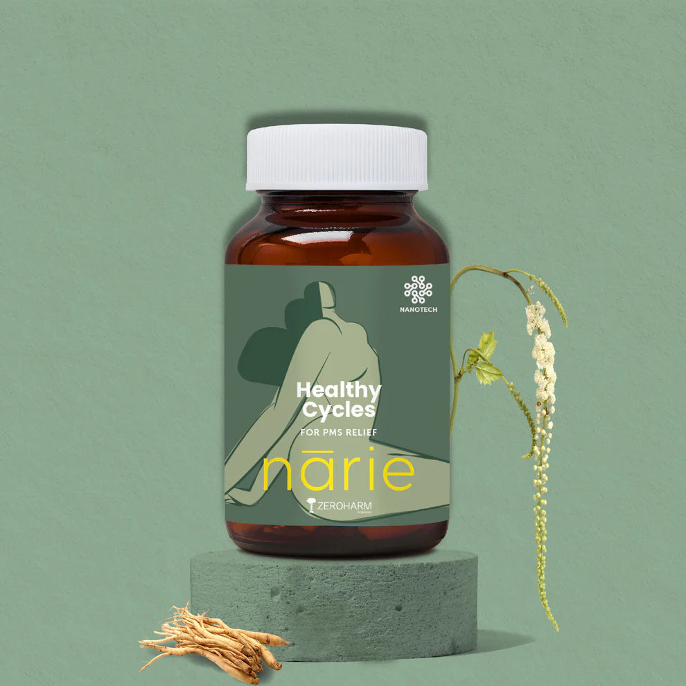 Narie Healthy Cycles by ZeroHarm is a precision nutraceutical that combines the power of Shatavari, Lodhra, Chaste berry, Ashoka, and Black cohosh for restoring hormonal balance, regularizing cycles, preventing excessive flow, reducing pain, and enhancing overall menstrual health. ZeroHarm Sciences offer plant-based solutions that’re curated in international labs, validated by experts and are tested to have zero side-effects. We at ZeroHarm, employ aqueous extraction to retain the purity, nanotechnology for high absorption, sustained release to provide sustained nutrition over time and precision delivery for highest efficacy even with a much lower dosage.HighlightsKey Benefits: